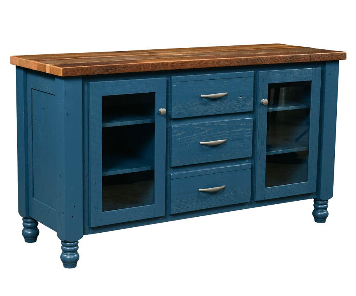 Shown With: Wood: Rough Sawn Barnwood Oak Stain: Clear Paint: Royal Blue Hardware: K2335-WN (knob) K2029-LAP (pull)