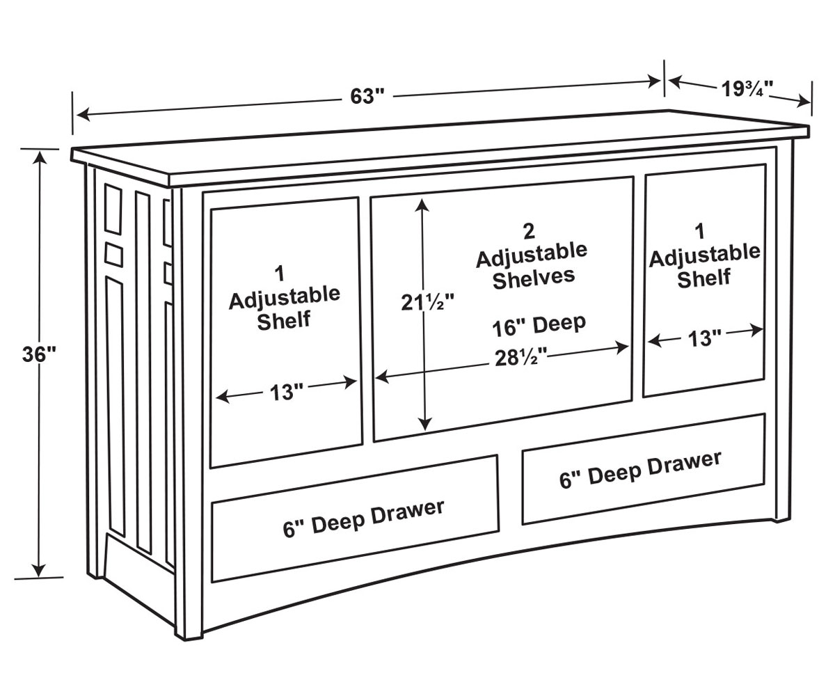 Dimensions: 63″W x 19¾”D x 36″H
